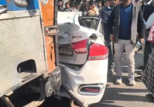 पहले देखें हादसे में छतिग्रस्त कारों की दो तस्वीरें…