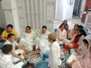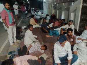 आवास के बाहर अनशन पर बैठे सांसद राकेश राठौर व उनके समर्थक